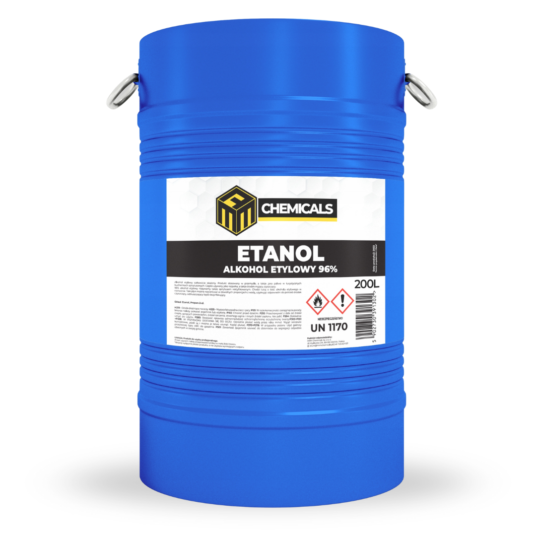 Wysokiej jakości alkohol etylowy 96% (etanol) to wydajny środek do zastosowań technicznych, przemysłowych i laboratoryjnych. Czysta forma etanolu doskonale sprawdza się w dezynfekcji, czyszczeniu, odtłuszczaniu oraz jako składnik rozpuszczalników, kosmetyków i środków czystości.