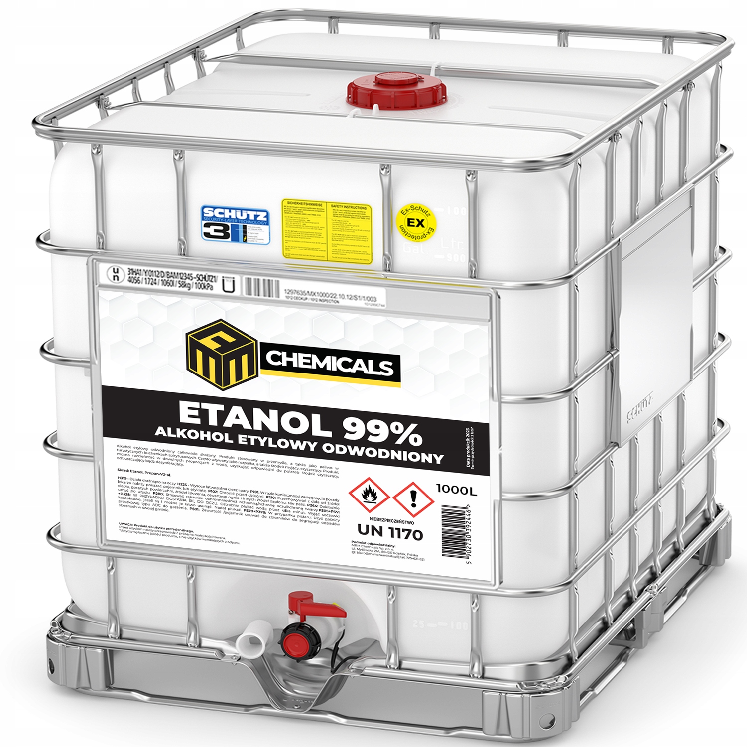 ALKOHOL ETYLOWY ODWODNIONY ETANOL 99% 1000L MAUZER